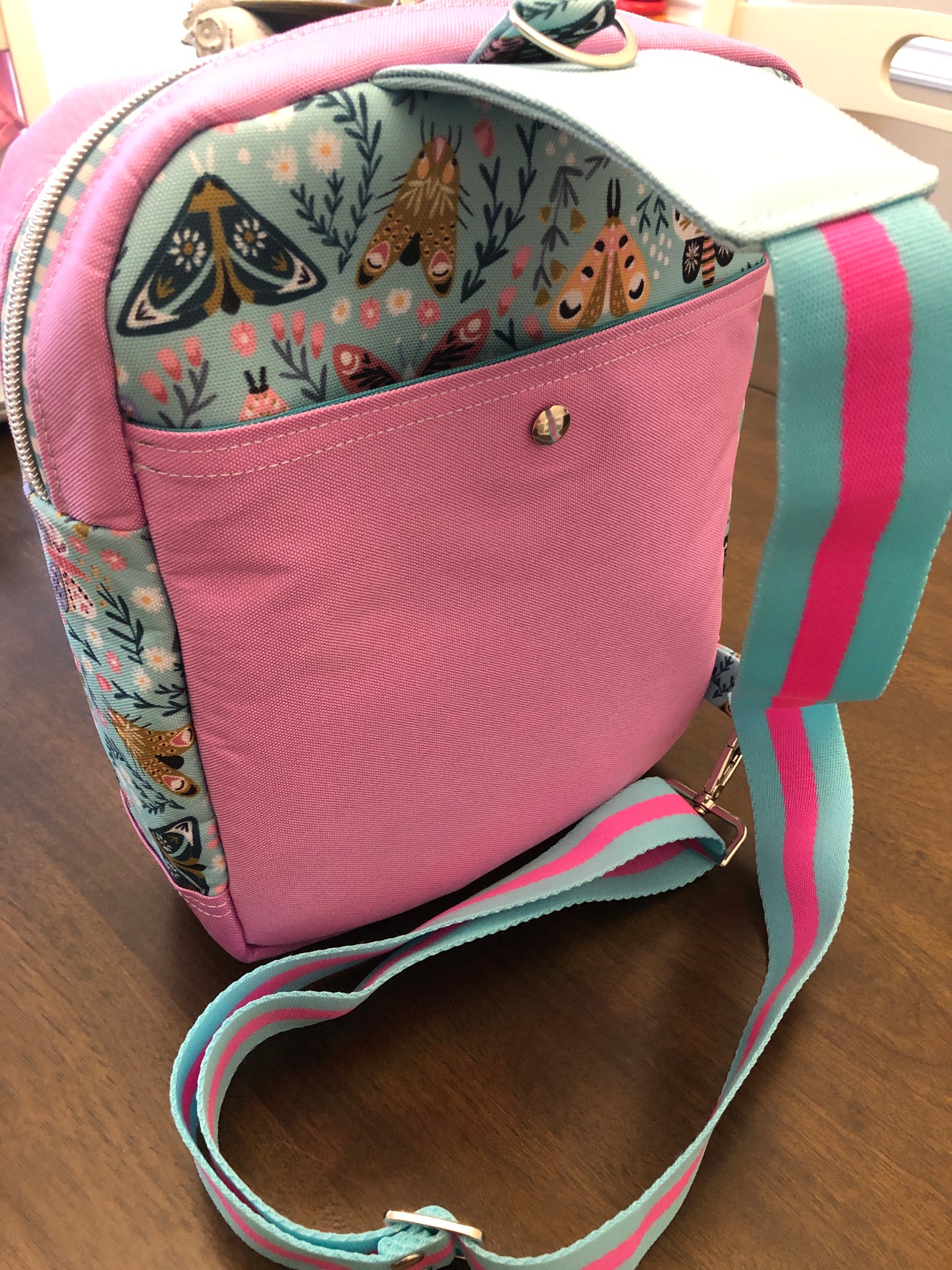 Back slip pocket with magnetic snap.
